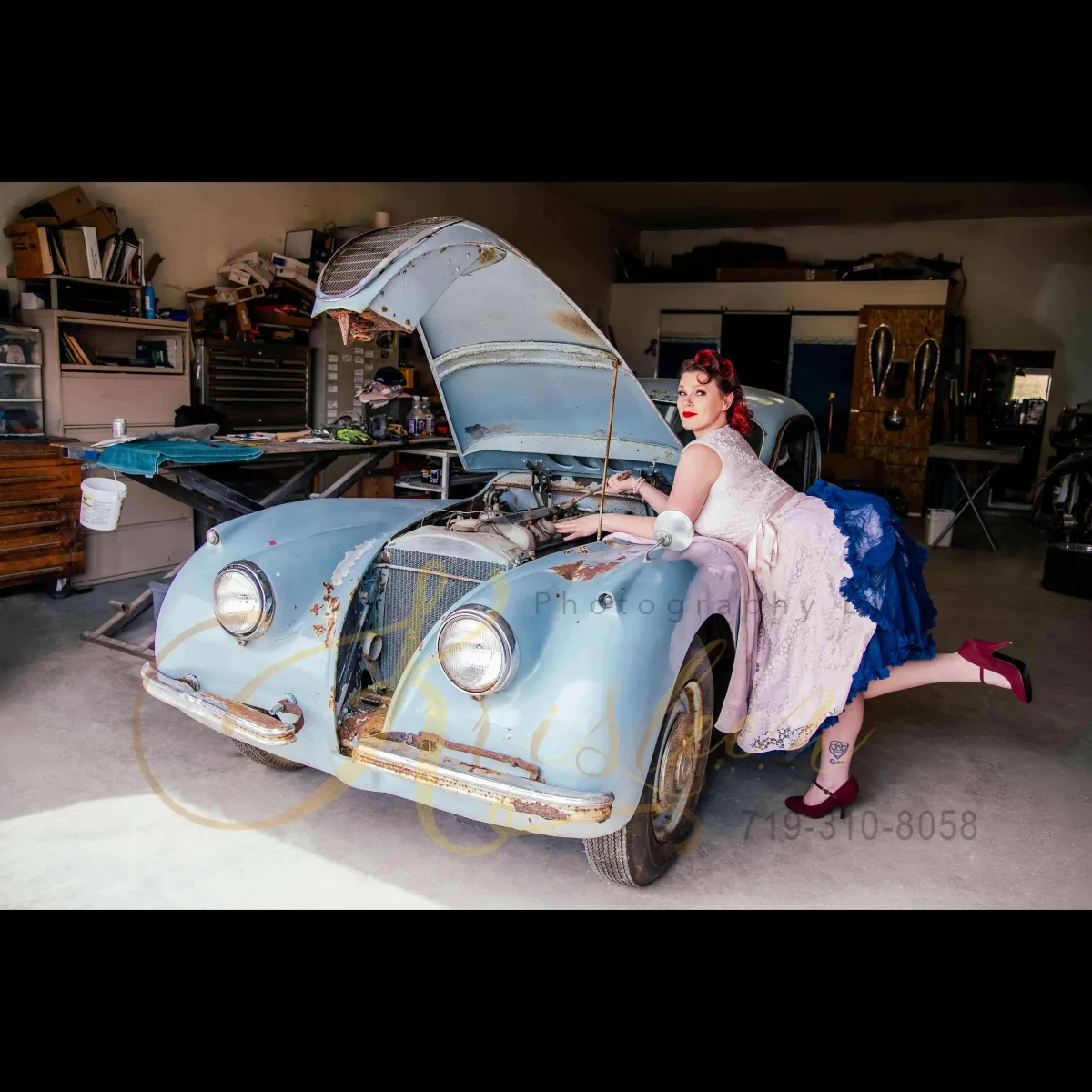 With over thirty years of photography experience and a passion for Pin-Up style, I launched my career as a Pin-Up Photographer. The sensual nature of vintage undergarments inspired me to incorporate boudoir photographs into my sessions. Witnessing the transformation in self-esteem during these sessions led to the creation of what I now call the Goddess Experience. Additionally, my husband's custom-built cars often feature in my photography sessions, adding a unique and authentic touch.
